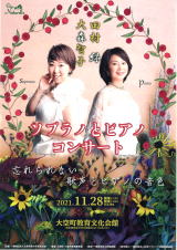 | ■日 時 : 2021年11月28日(日) 開演 14:00 開場 13:30 ■会 場 : 大空町教育文化会館 ■料 金 : 全席自由(税込) 前売 1,500円 当日 2,000円 |