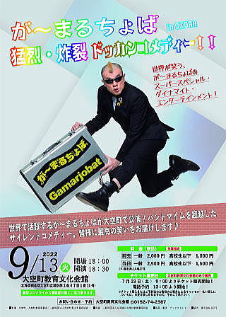 が~まるちょば 猛烈・炸裂ドッカンコメディー!! 世界で活躍するが~まるちょばが大空町で公演!パントマイムを超越したサイレントコメディー。皆様に最高の笑いをお届けします♪ |